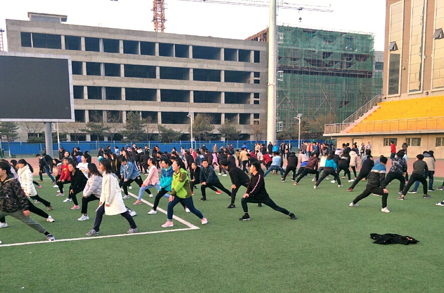 迎着暮春的朝阳,材冶学院团总支学生会全体成员进行了新学期的早训。