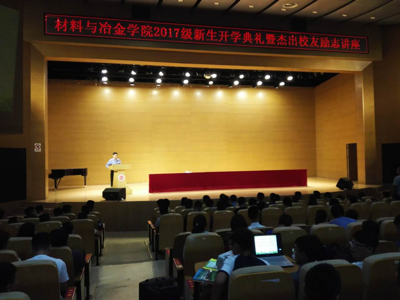 9月3日下午,材冶学院2017级本科生开学典礼在学校音乐厅举行。校党委常委副校长任慧平教授、校团委书记韩冰、院长宋希文等党政教领导出席。会议由院总支副书记副院长张鑫主持。开学典礼在全场庄严的奏唱国歌声中拉开帷幕。