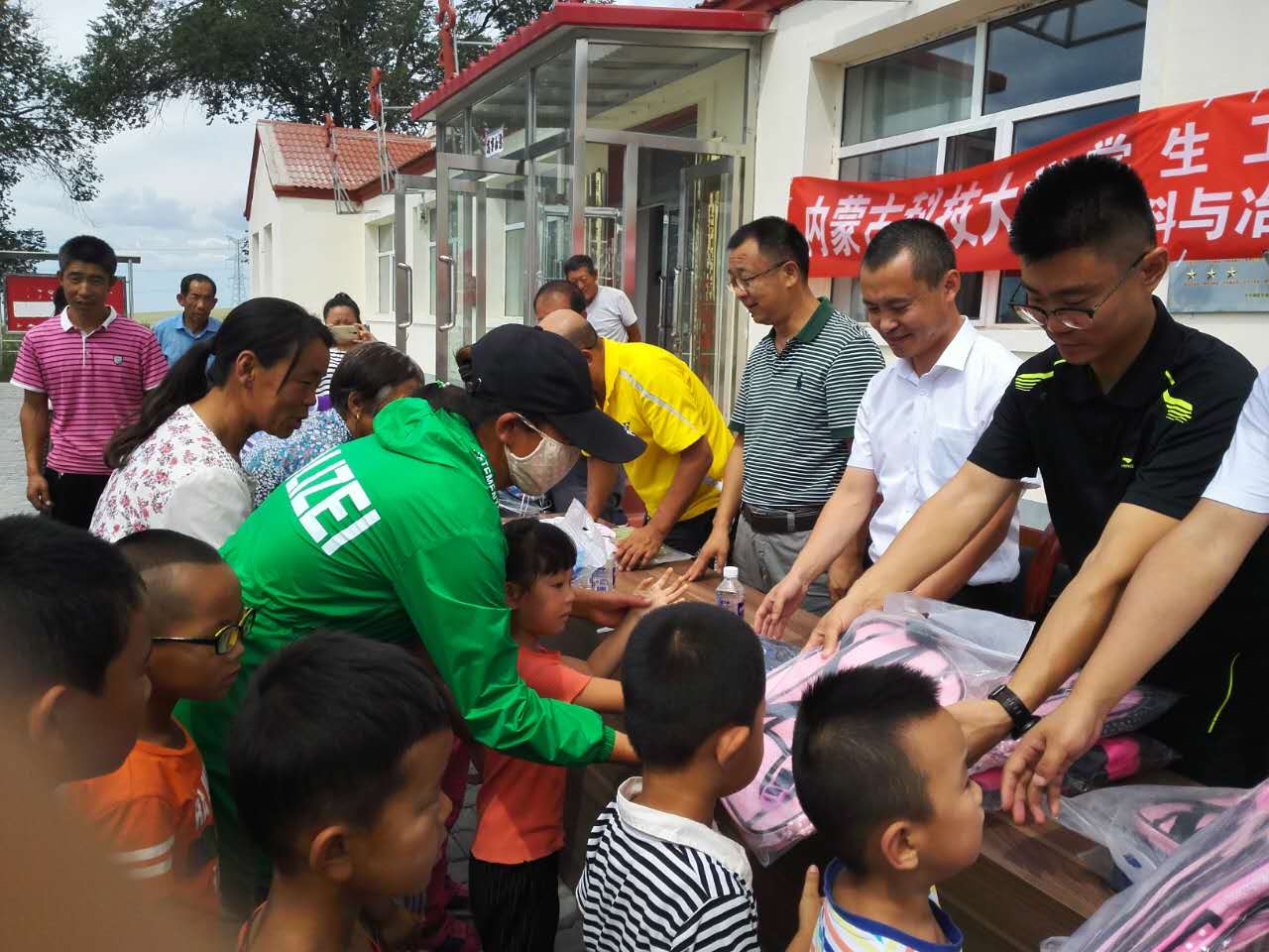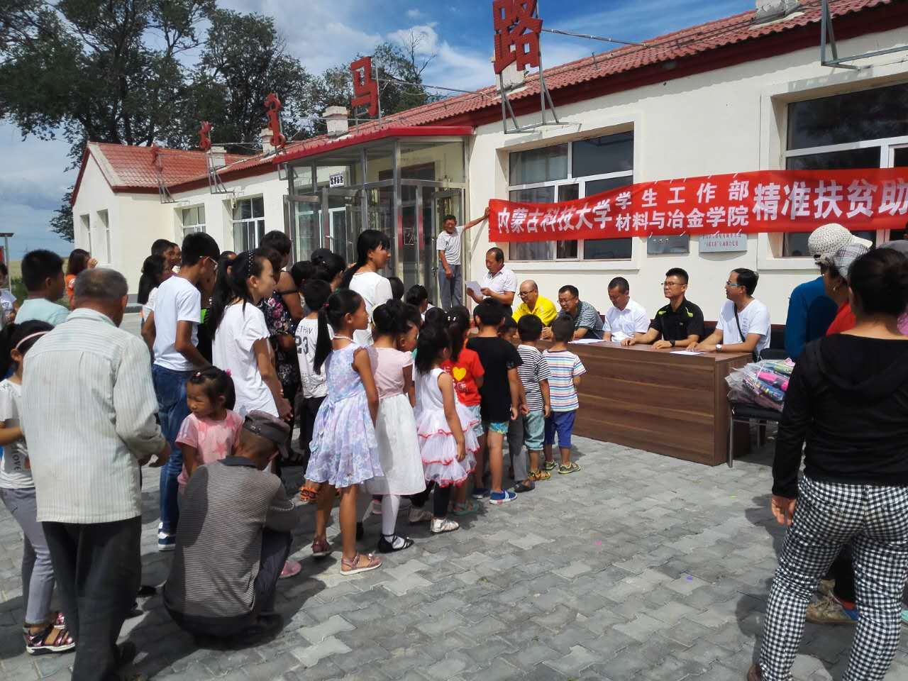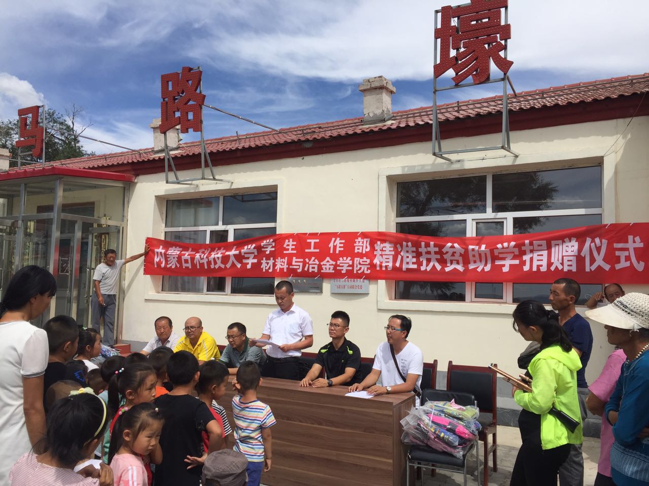 在思想政治教育、技术指导、财物资助的“感恩每一个帮助过自己的人,感恩祖国这片土地,感恩中国共产党”的讲话;郝喜红书记代表学生工作部和材料与冶金学院作了热情洋溢的讲话,他介绍了我校在精准扶贫期间对马路壕村的各项帮扶措施和材冶学院派驻驻村干部脱贫工作情况,对受资助的孩子们寄予了厚望。本次活动,校学生工作部和材冶学院共向马路壕村贫困家庭学子捐赠书包文具40套、军训服50套、运动鞋50双,价值共计13000元,减轻了贫困学子的经济负担。整个活动由住村干部罗建龙主持。