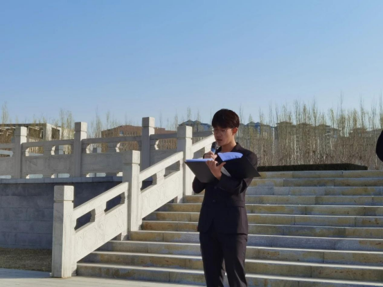 上午9时30分,活动在庄严的国歌声中拉开帷幕。在主持人的带领下,全体师生代表面向革命烈士纪念碑肃立默哀,表达对革命先烈们的无限哀思。随后,学生代表伴随着深情的《献花曲》,抬起花篮缓步拾阶而上,将花篮敬献至革命烈士纪念碑前。
