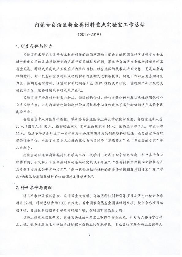 内蒙古自治区新金属材料重点实验室2017-2019工作总结