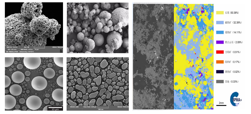 表面形貌分析;EDS成分分析;BPMA矿物分析;EBSD取向分析